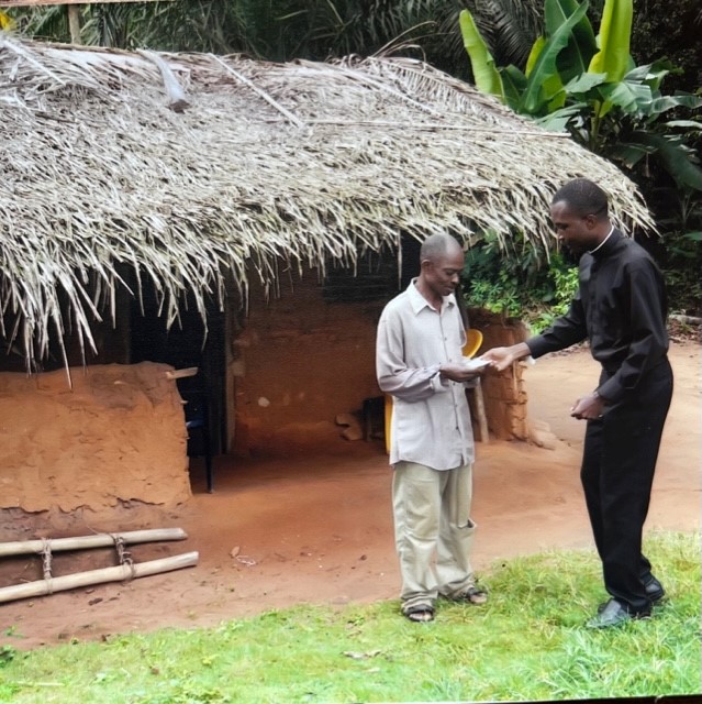 Around the village the story is the same. People living in mud huts with not enough food to eat. MAF visits frequently to make sure they have rice, water, and money for supplies. This grateful man says: “My wife and I with our six children live in this hut without good nutrition and other necessities of life. Thank you, Maria Africa Foundation, for sending Fr. Simon to give me and my family a donation and a chance.